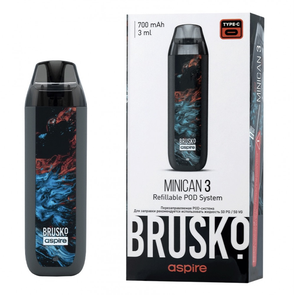 Перезаправляемая Под-Система Бруско Миникан 3 (Brusko Minican 3) 700 mah, Серый Флюид - купить в Иваново