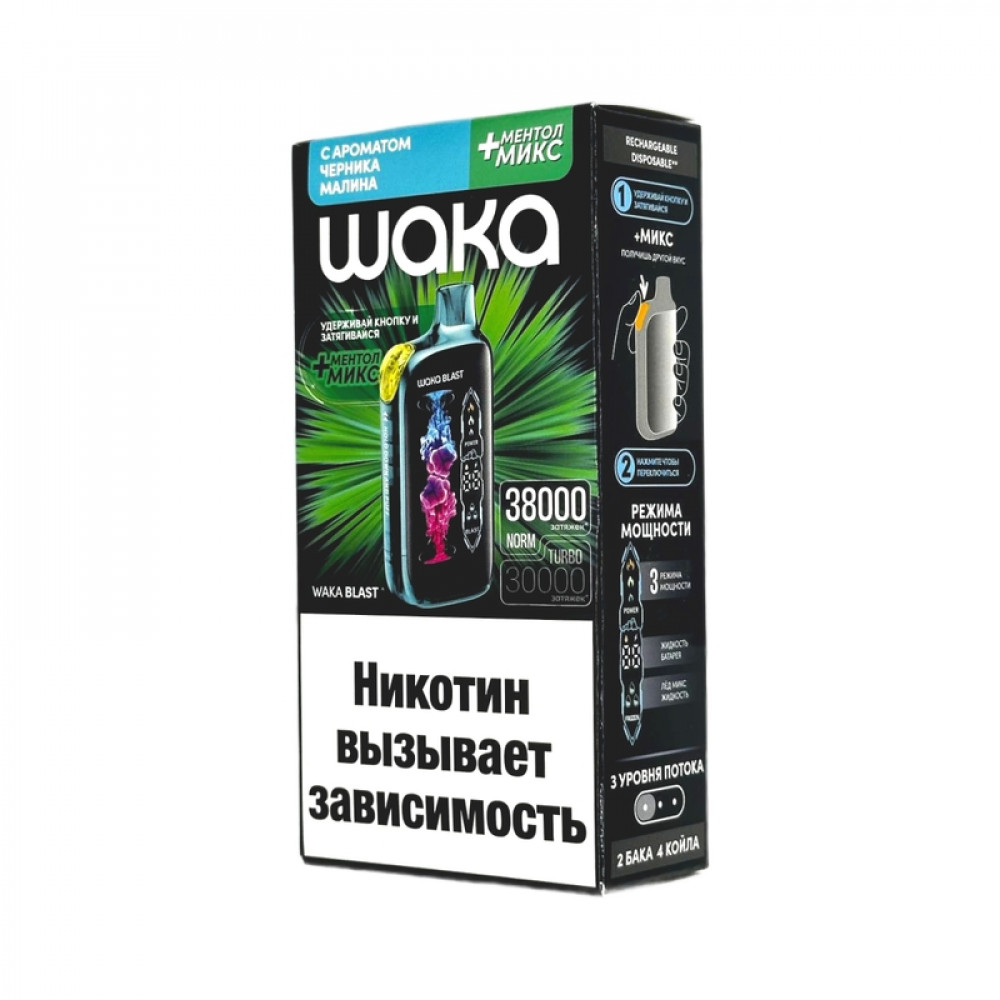 WAKA BLAST 38000 Hard - Черника малина + ментол микс - купить в Иваново